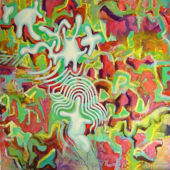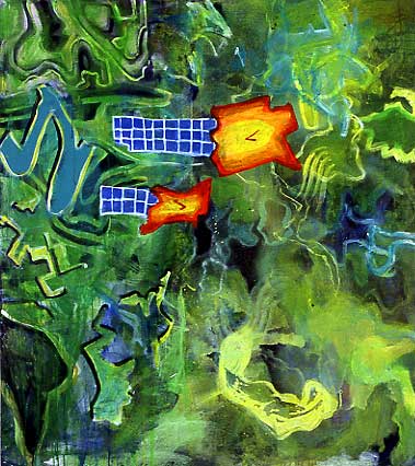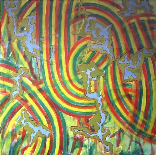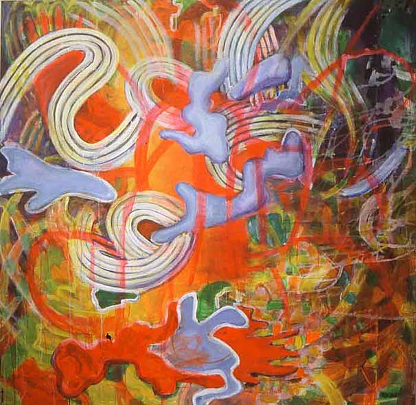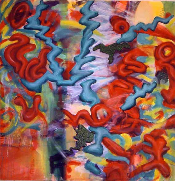 In my painting, as exterior effects, I often use symbols from the popular culture, decoded and given an abstract shape.